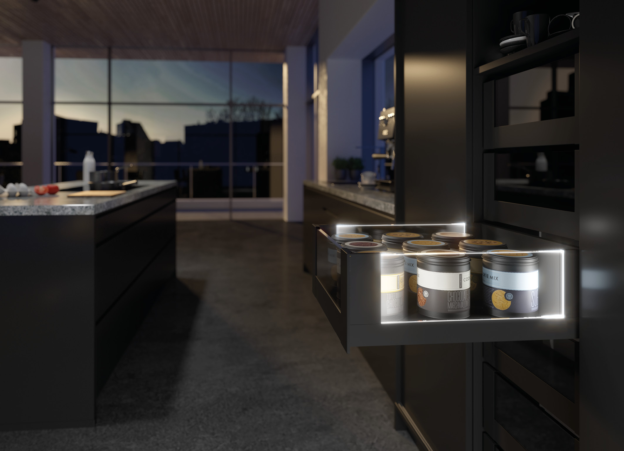 - Automatic illumination when opening the drawer, switches off when closing the drawer