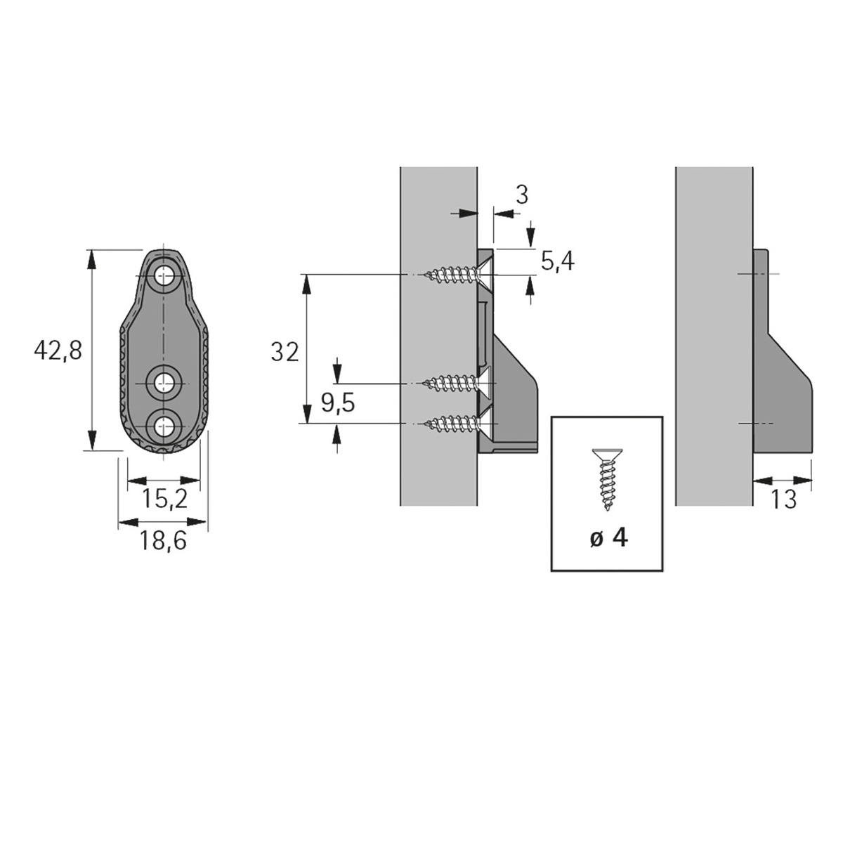 - Hole spacing 32 mm