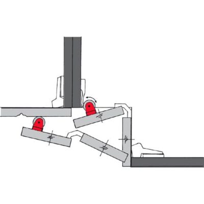 Catch to prevent dropping of bi-fold corner doors and damage due to dropping and accidental misuse. A catch, aligner and protector. Suits standard two door corner units.