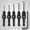Use self-centering hinge bits to accurately drill pilot holes in hinges, handles, drawer slides and other hardware.