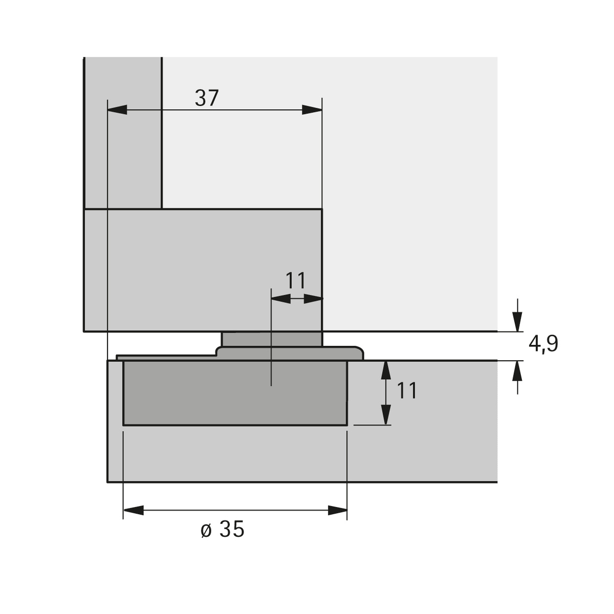- Door overlay at least 37 mm (hinge arm flush with the edge of the frame)