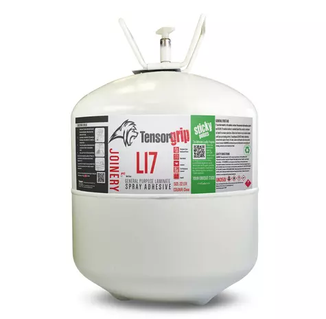 Tensorgrip® L17 is a high performance contact adhesive with a unique resin formula which creates a tough and resilient bond line between decorative surface materials and all common wood substrates. Suitable for bonding HPL, GRP and aluminium to a wide variety of substrates including MDF, chipboard, plywood and many other timber sheet materials and is designed for permanent bonding where immediate bond strength and high heat resistance are required.
