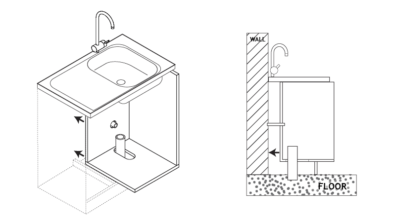 Improves vanity and sink unit installation proceedure and appearance. Installation is quicker, neater, easier: