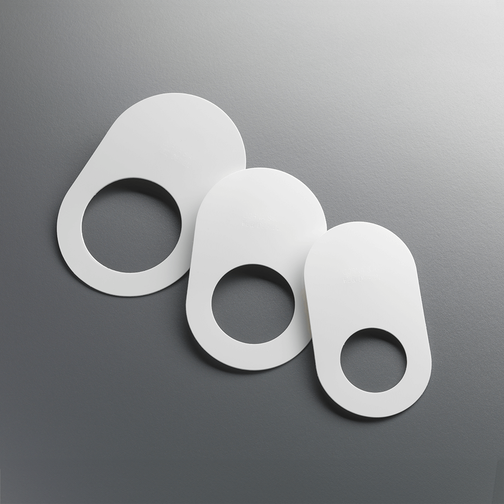 - Made from 1mm thick white gloss plastic with self-adhesive backing.